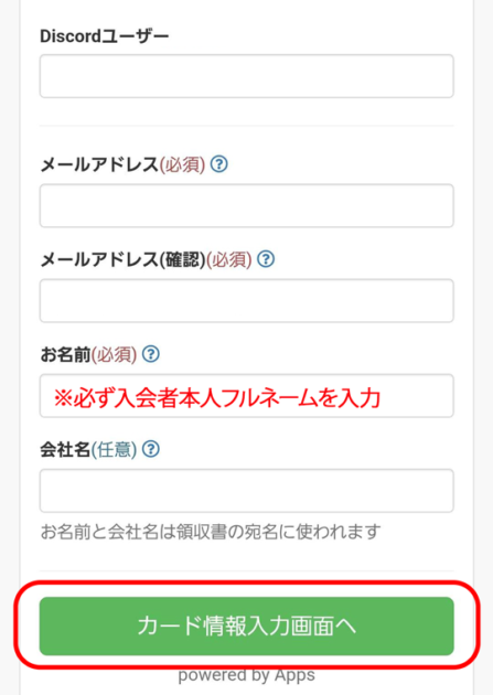 名前は必ず、入会申込者本人のフルネームで入力ください。