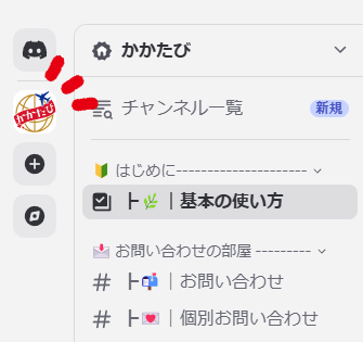 申込完了後、Discord上に「かかたび」のアイコンが表示されます。 Discordにログインしてご確認ください。